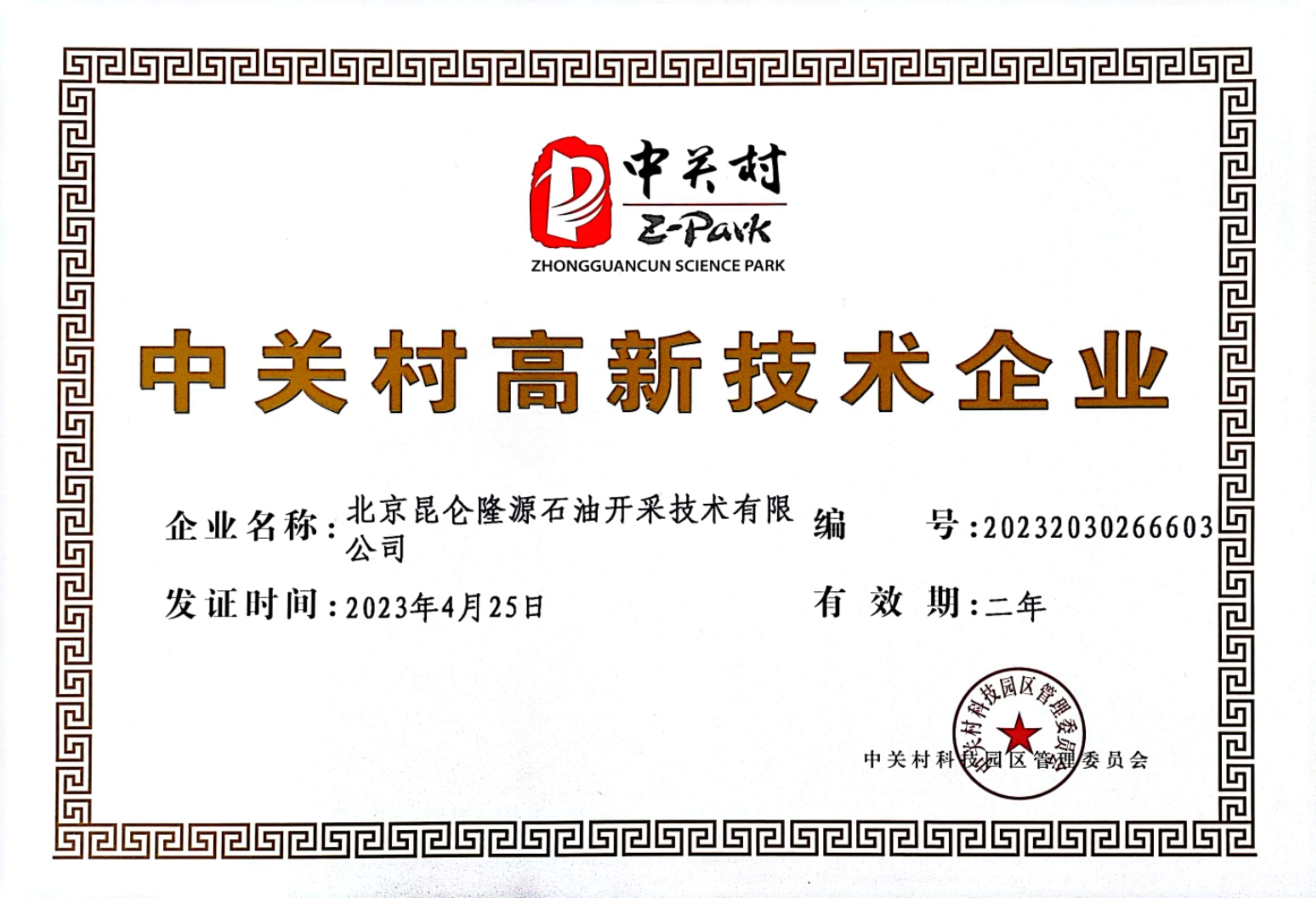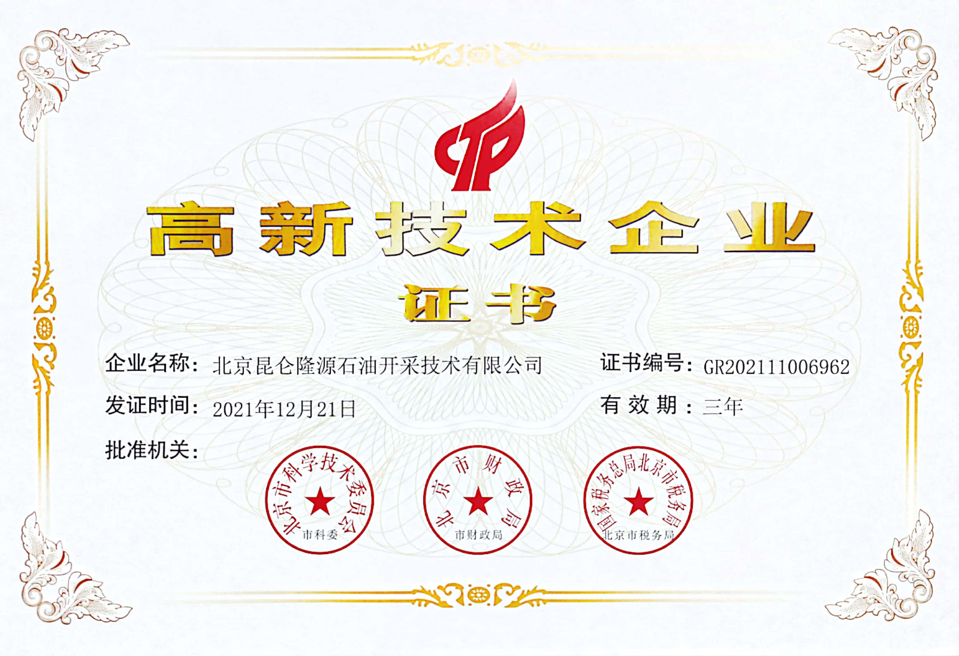 高新技术企业证书